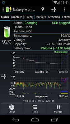 Ανακαλύψτε κάθε πτυχή της μπαταρίας σας μέσα από λεπτομερή, προσαρμόσιμα γραφήματα ιστορικών δεδομένων, τα οποία προσφέρουν πλήρη δυνατότητα κύλισης και ζουμ για εις βάθος ανάλυση. Παρακολουθήστε τις κρίσιμες πληροφορίες απευθείας στη γραμμή κατάστασης, στις ειδοποιήσεις, ή μέσα από ευέλικτα γραφικά στοιχεία στην αρχική σας οθόνη. Υπολογίστε με ακρίβεια τον υπολειπόμενο χρόνο λειτουργίας ή φόρτισης (μέσω AC, USB, ή ασύρματα) και προσδιορίστε την πραγματική χωρητικότητα της μπαταρίας σας. Ενεργοποιήστε ειδοποιήσεις με βάση προκαθορισμένες παραμέτρους, ενώ η εφαρμογή αυτή ξεχωρίζει για την εξαιρετικά χαμηλή κατανάλωση ενέργειας στην αγορά. Παρέχει επίσης ειδική υποστήριξη για συσκευές όπως Asus Transformer, Padfone, Inno D6000, συσκευές διπλής μπαταρίας HP, καθώς και ειδική υποστήριξη edge για συσκευές Samsung. Εύκολη πρόσβαση σε online βοήθεια απευθείας μέσα από το περιβάλλον της εφαρμογής.