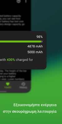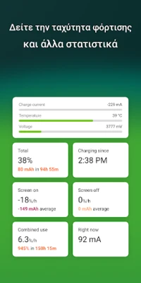 Κάθε κύκλος φόρτισης αφήνει το αποτύπωμά του στην μπαταρία σας, μειώνοντας σταδιακά τη συνολική της χωρητικότητα και τη μακροζωία της. Μην αφήνετε την μπαταρία σας να φθείρεται πρόωρα! Το AccuBattery είναι ο απόλυτος σύμμαχός σας για την προστασία και τη διαχείριση της υγείας της. Με καινοτόμες ειδοποιήσεις, σας υπενθυμίζει να αποσυνδέετε τη συσκευή σας την κατάλληλη στιγμή, προστατεύοντας την κυριολεκτικά από την υπερφόρτιση και την άσκοπη φθορά. Παρακολουθήστε λεπτομερώς πόσο επηρεάζεται η μπαταρία σας με κάθε φόρτιση και πάρτε τον έλεγχο της διάρκειας ζωής της στα χέρια σας.