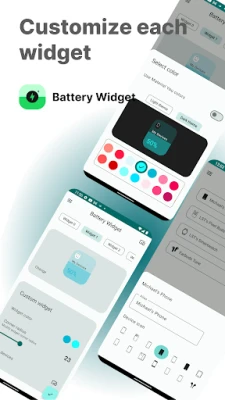Η προσαρμογή είναι στο επίκεντρο της εμπειρίας με το Battery Widget. Διαμορφώστε κάθε widget σύμφωνα με τις προτιμήσεις σας, επιλέγοντας από ποικιλία σχημάτων, μεγεθών και χρωμάτων, συμπεριλαμβανομένης της ζωντάνιας των δυναμικών χρωμάτων του Material You για συσκευές Android 12+. Προσαρμόστε ονόματα και εικονίδια για τις συσκευές σας, δημιουργώντας μια μοναδική διάταξη που αντικατοπτρίζει το προσωπικό σας στυλ. Από smartphones και tablets μέχρι ασύρματα ακουστικά, ηχεία Bluetooth και smartwatches, το Battery Widget παρακολουθεί αδιάκοπα την ενέργεια, χωρίς να συλλέγει ή να κοινοποιεί προσωπικά δεδομένα, διασφαλίζοντας την απόλυτη ιδιωτικότητά σας.
