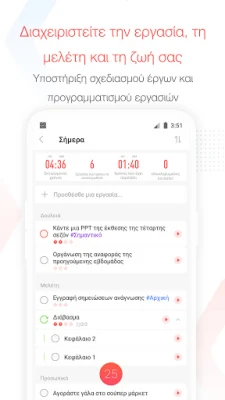 Η Focus To-Do είναι ο απόλυτος σύντροφος για όσους αναζητούν να ενισχύσουν την παραγωγικότητά τους, να καταπολεμήσουν την αναβλητικότητα και να διαχειριστούν αποτελεσματικά τον χρόνο τους. Συνδυάζοντας τη δοκιμασμένη τεχνική Pomodoro με ένα ολοκληρωμένο σύστημα διαχείρισης εργασιών, αυτή η εφαρμογή σας επιτρέπει να εστιάσετε βαθιά στις υποχρεώσεις σας, να οργανώσετε τις λίστες σας και να παρακολουθήσετε την πρόοδό σας με απαράμιλλη ευκολία. Από τις ακαδημαϊκές μελέτες και τα επαγγελματικά καθήκοντα, μέχρι τις καθημερινές εργασίες του σπιτιού, η Focus To-Do είναι σχεδιασμένη για να σας βοηθά να επιτύχετε περισσότερα, με λιγότερο άγχος.