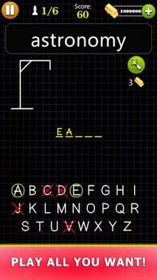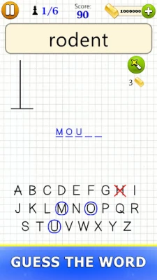 Ετοιμαστείτε για την απόλυτη λεκτική πρόκληση με το "Hangman - Word Game"! Βυθιστείτε σε έναν συναρπαστικό κόσμο γρίφων, όπου η οξύνοια και η διαίσθησή σας θα δοκιμαστούν σε τέσσερα διαφορετικά επίπεδα δυσκολίας – από το εύκολο έως το επίπεδο ειδικού. Κάθε σωστή σας μαντεψιά σας φέρνει πιο κοντά στην αποκάλυψη της κρυμμένης λέξης, ενώ κάθε λάθος κίνηση αυξάνει τον κίνδυνο να συμπληρωθεί ο κρεμασμένος. Ενισχύστε το λεξιλόγιό σας και διευρύνετε τις γενικές σας γνώσεις μέσα από μια διαδραστική εμπειρία που συνδυάζει τη διασκέδαση με την εκμάθηση, όπου ο στόχος είναι ένας: να μαντέψετε τη λέξη με όσο το δυνατόν λιγότερα λάθη.