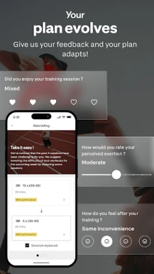 Η λειτουργία της Kiprun Pacer βασίζεται σε ένα έξυπνο, προσαρμοστικό σύστημα. Καθορίστε τις ημέρες που μπορείτε να προπονηθείτε, και δείτε το εξατομικευμένο σας πρόγραμμα να ξετυλίγεται μέχρι την ημέρα του αγώνα. Μπορείτε να στέλνετε τις καθημερινές σας συνεδρίες, πλήρεις με ρυθμούς, απευθείας στο Garmin ή Coros ρολόι σας (σύντομα και σε Apple Watch), ενώ εισάγετε εύκολα δεδομένα από τις συσκευές Garmin, Polar, Suunto, Coros ή Fitbit (σύντομα και από Apple Watch), ή να καταχωρείτε χειροκίνητα τις δραστηριότητές σας. Μετά από κάθε τρέξιμο, το πολύτιμο feedback σας επιτρέπει στην εφαρμογή να προσαρμόζει το πλάνο σας, βελτιώνοντας το βάσει της διάθεσης, της απόδοσης και της φυσικής σας κατάστασης. Επιπλέον, οι προγνωστικοί αλγόριθμοι της εφαρμογής σας καθοδηγούν στην επιλογή του ιδανικού στόχου, είτε πρόκειται για 10k, ημιμαραθώνιο, μαραθώνιο ή αγώνα βουνού, ενώ παράλληλα το πρόγραμμά σας εξελίσσεται και προσαρμόζεται ανάλογα με τη διαρκώς βελτιούμενη απόδοσή σας.